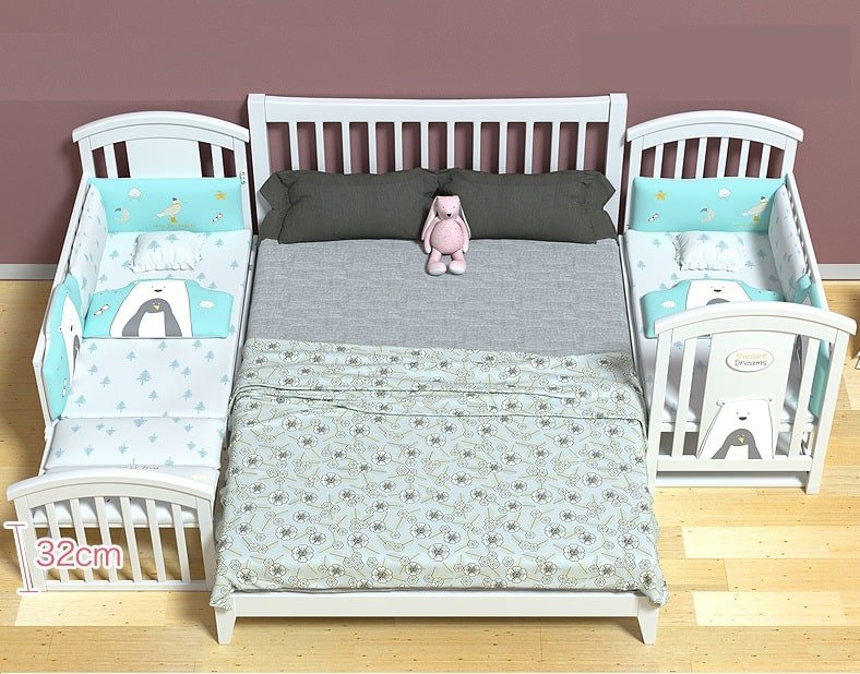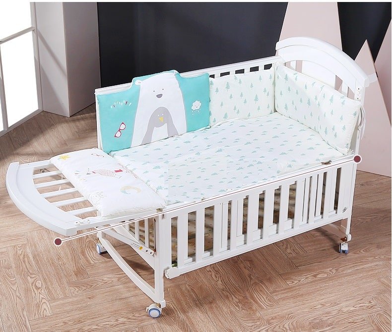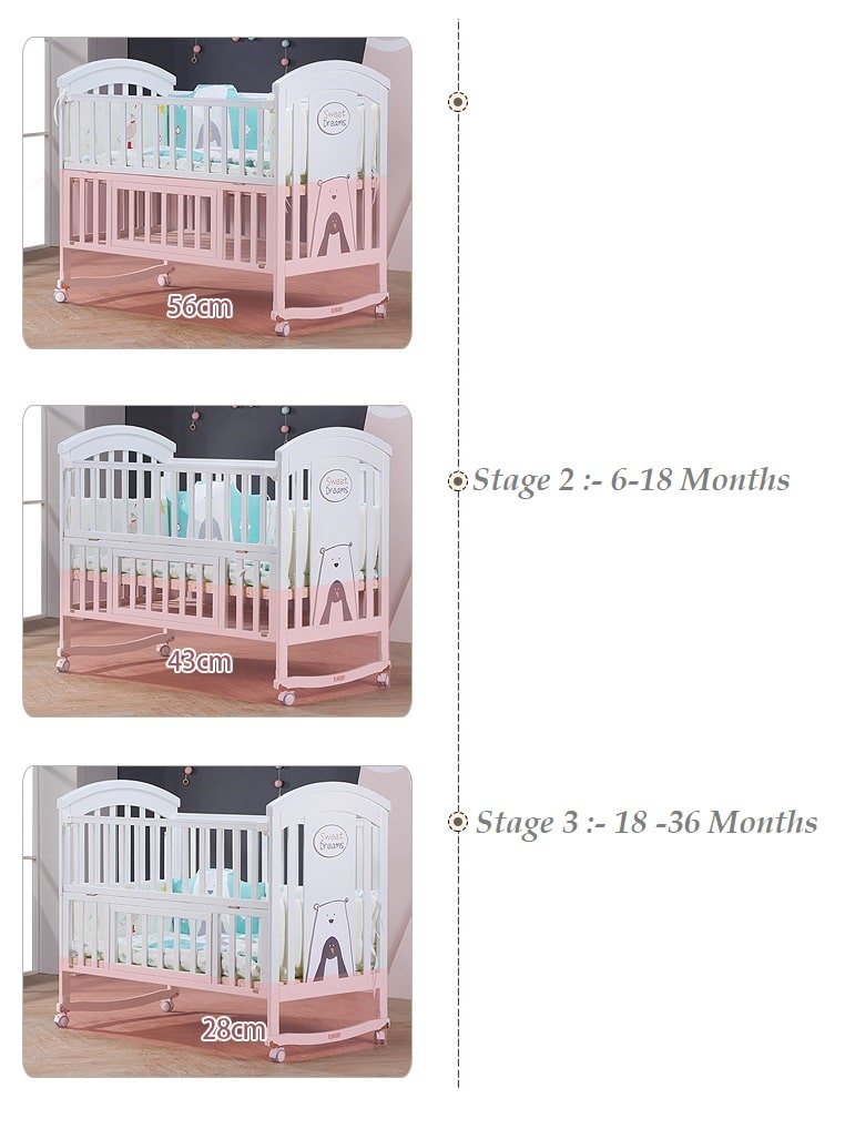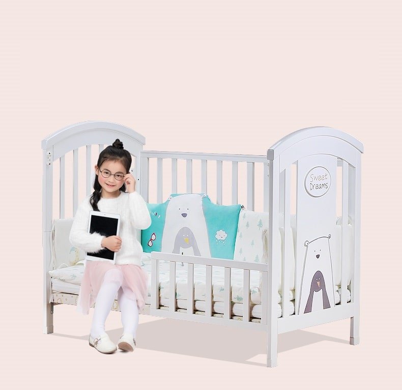 - The Bed can be extended as toddler bed when baby grows up.This Crib has soft bed board and comes with 6 piece premium quality Forest Theme Bedding Set with fitted sheet which includes fillers, 4 side mix and match bumpers and baby pillow. The bedding set is completely tasteless and odorless, made from high quality material. It is breathable, hand washable and hypoallergic worth Rs 7,200 plus designer mosquito net with stand worth Rs 2,500 is given free as introductory offer till stocks last