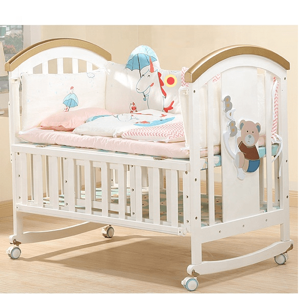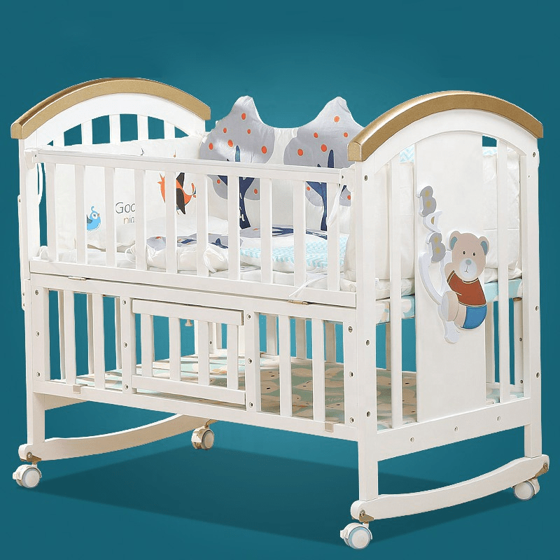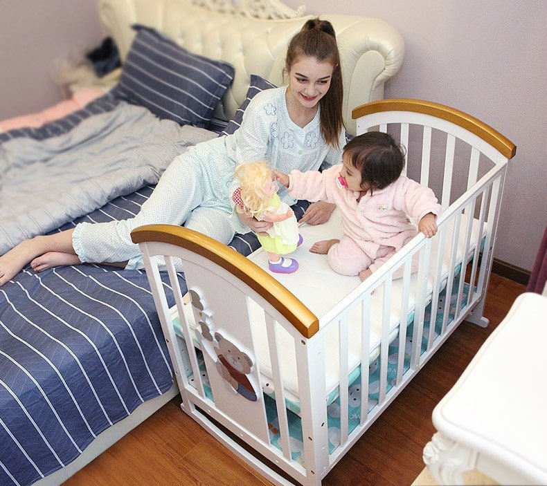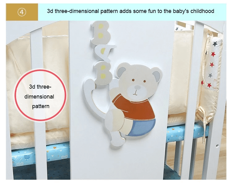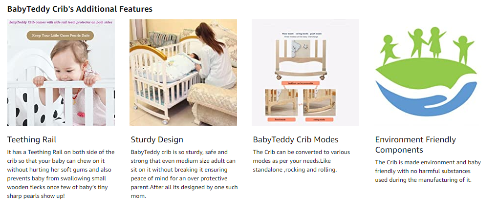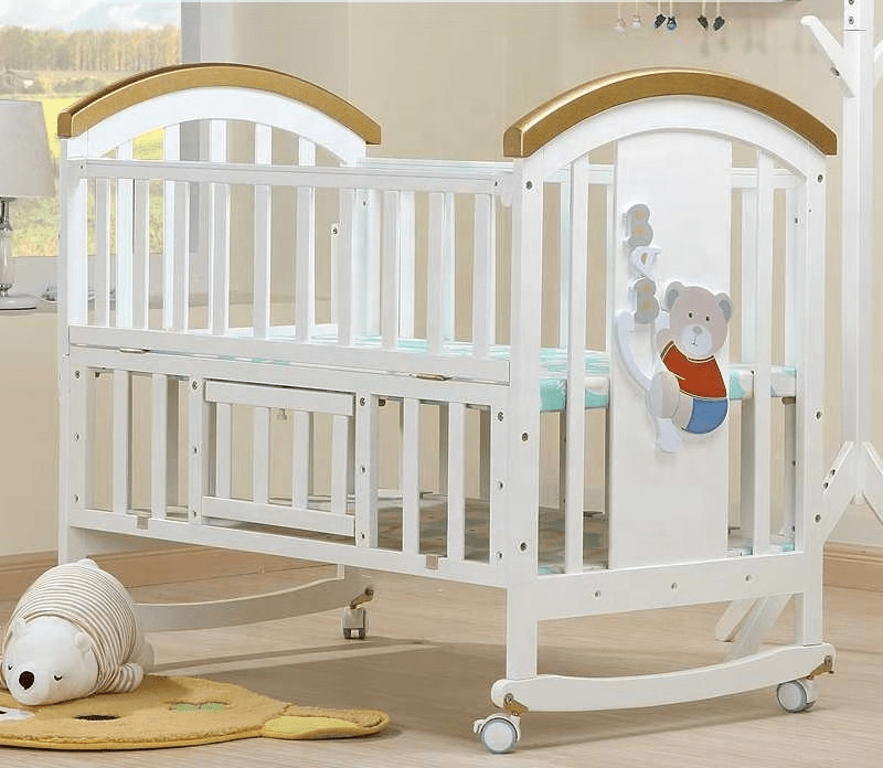 - It has a Teething Rail on both side of the crib so that your baby can chew on it without hurting her soft gums and also prevents baby from swallowing small wooden flecks once few of baby’s tiny sharp pearls show up!. The BabyTeddy crib can also be used as playpen for your naughty ninja while you can relax worry free.