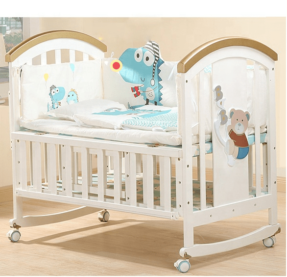 BabyTeddy® 9 in 1 Patented Multifunctional Baby Crib, Baby Wooden Cot, Bed, Rocker,Convertible Desk and Kid’s Sofa with Mattress and Mosquito Net (White)