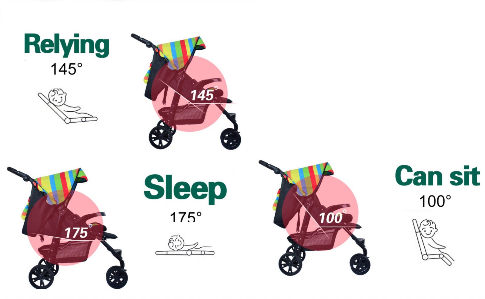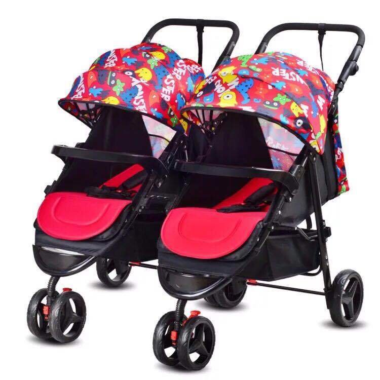 BabyTeddy® Baby Twin Stroller Detachable Easy Foldable Twin Stroller and Pram for Kids(Red)