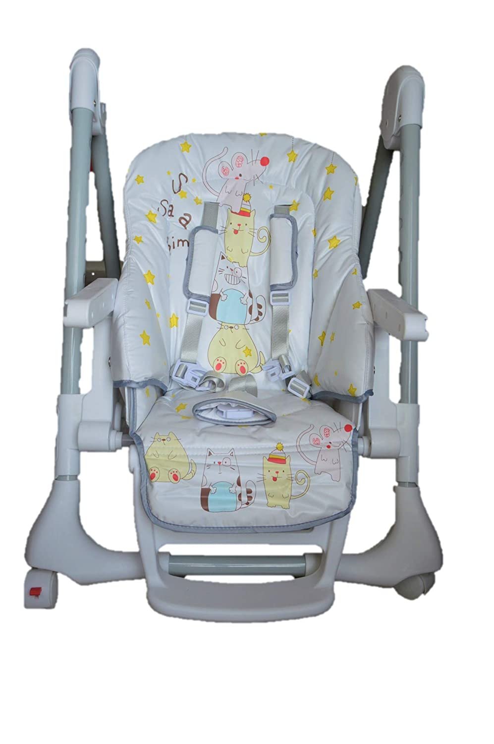BabyTeddy Baby’s Star Kitty Mousy High Chair Feeding Booster with 8 Level Height Adjustment and 4 Wheels (White)