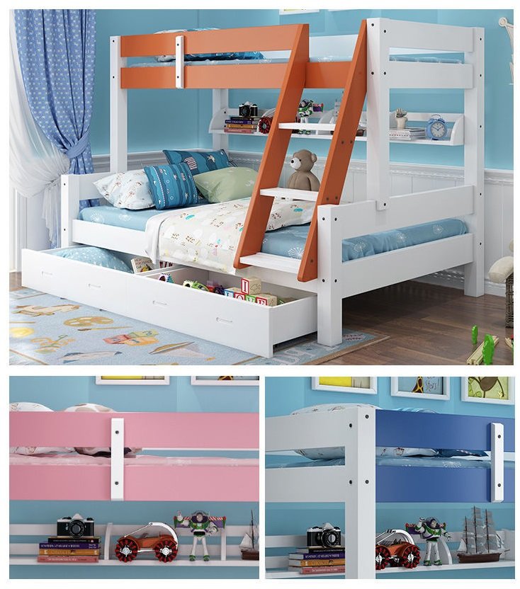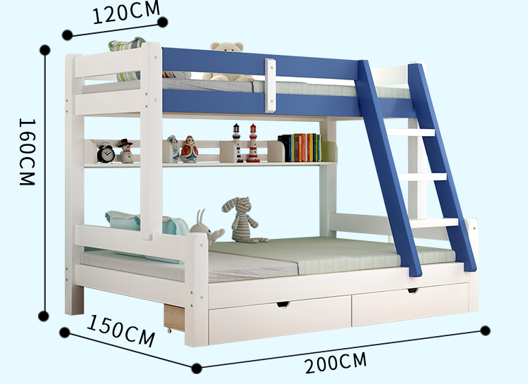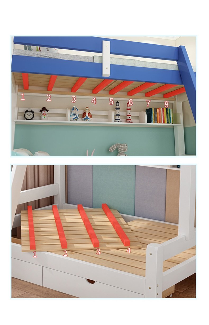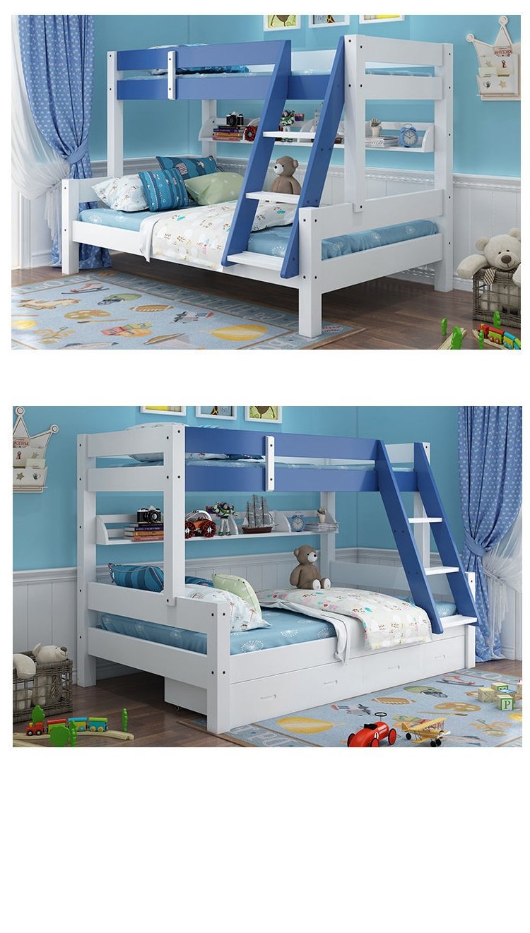 - Guard rails for added security on the top bunk.4-step ladder included.