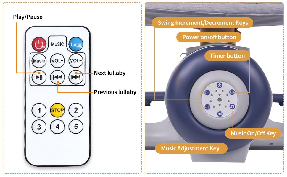 - There are 5 different swing amplitudes to choose from, which allows you to control and tune with your baby’s favorite frequency.